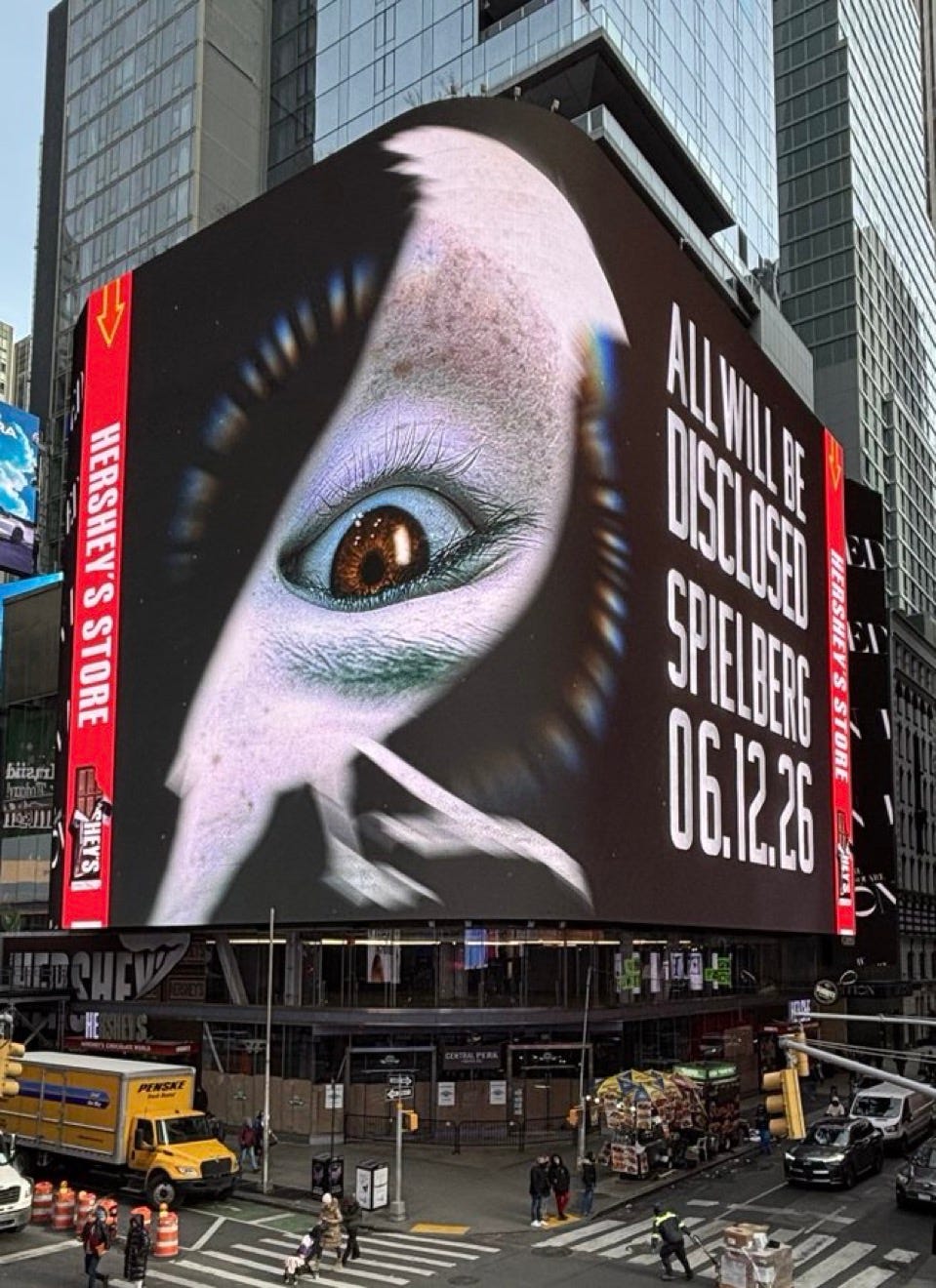 This week, a billboard in LA and in New York’s Times Square revealed Steven Spielberg’s latest project about aliens with the tagline “All will be disclosed”, which has generated excitement both in the UFO community and among the general public.. The trailer for the new film, which presumably involves an evolution of Spielberg’s thinking since 1977’s Close Encounters of the Third Kind and 1982’s E.T., is coming this week. Although it may not the final title, one of the code names for this project has been simply, Disclosure, which means that Spielberg is timing his movie right in the middle of a new wave of interest in UFOs (now called UAP).