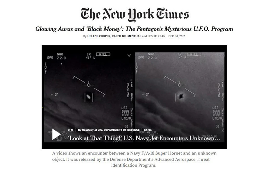 A 2017 article in The New York Times belied this statement when it revealed in a front page story that there had been on-going efforts at the Pentagon to continue to study UFOs, including one program championed and funded with millions of dollars by former Senate Majority Leader Harry Reid. This mainstream placement of the article and accompanying videos of UFO sightings, such as the Tic-Tac sighting off the coast of California in 2004, which pilots called “out of this world”, led to the current revival of interest the UFO subject in the media. Many of the whistleblowers in the recent documentary were involved in this particular government program that Reid funded and its successors, dubbed first AAWSAP and then later called AATIP.